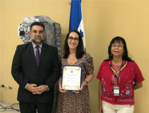 Tegucigalpa, Honduras. Septiembre 24, 2019. En una solemne ceremonia en el Auditorio Albert Einstein de la Universidad José Cecilio del Valle, sede oficial de la Academia Nacional de Ciencias de Honduras, luego de una brillante exposición sobre inmunizaciones contra enfermedades tropicales desatendidas, fue incorporada a la Academia la científica hondureña María Elena Botazzi, Microbióloga, con domicilio en el Estado de Texas, Estados Unidos