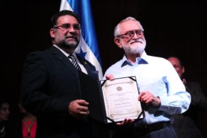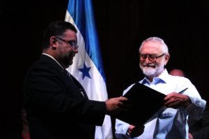 Tegucigalpa, Honduras. Enero 10, 2020. En una solemne ceremonia en el Auditorio Alma Mater de la Universidad Nacional Autónoma de Hoduras, fue incorporado a la Academia Nacional de Ciencias de Honduras el reconocido científico hondureño Sir Salvador Moncada, Médico y Farmacólogo, con domicilio en la ciudad de Londres, Inglaterra.