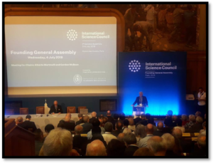 Paris, Francia, Julio 4, 2018. En una reunión histórica el 4 de julio de 2018, organizada por la Academia de Ciencias de Francia, el Consejo Internacional para la Ciencia (ICSU) y el Consejo Internacional de Ciencias Sociales (ISSC), se celebró sla Asamblea General inaugural y lanzamiento del nuevo organismo mundial de ciencias: como el «Consejo Científico Internacional» (ISC), un evento mundial único. La Academia Nacional de Ciencias de Honduras estuvo representada por su Presidente, el Prof. Dr. Mario Lanza Santamaría. En este nuevo organismo mundial participan todas las academias nacionales de ciencia, todos los organismos y agrupaciones científicas del mundo, todos los centros de investigación y las más prestigiosas universidades del planeta. La Asamblea General abrió con direcciones de Catherine Bréchignac, Secretaria Perpetua de la Academia Nacional de Cienciasde Francia, y Prince Alberto II de Monaco.